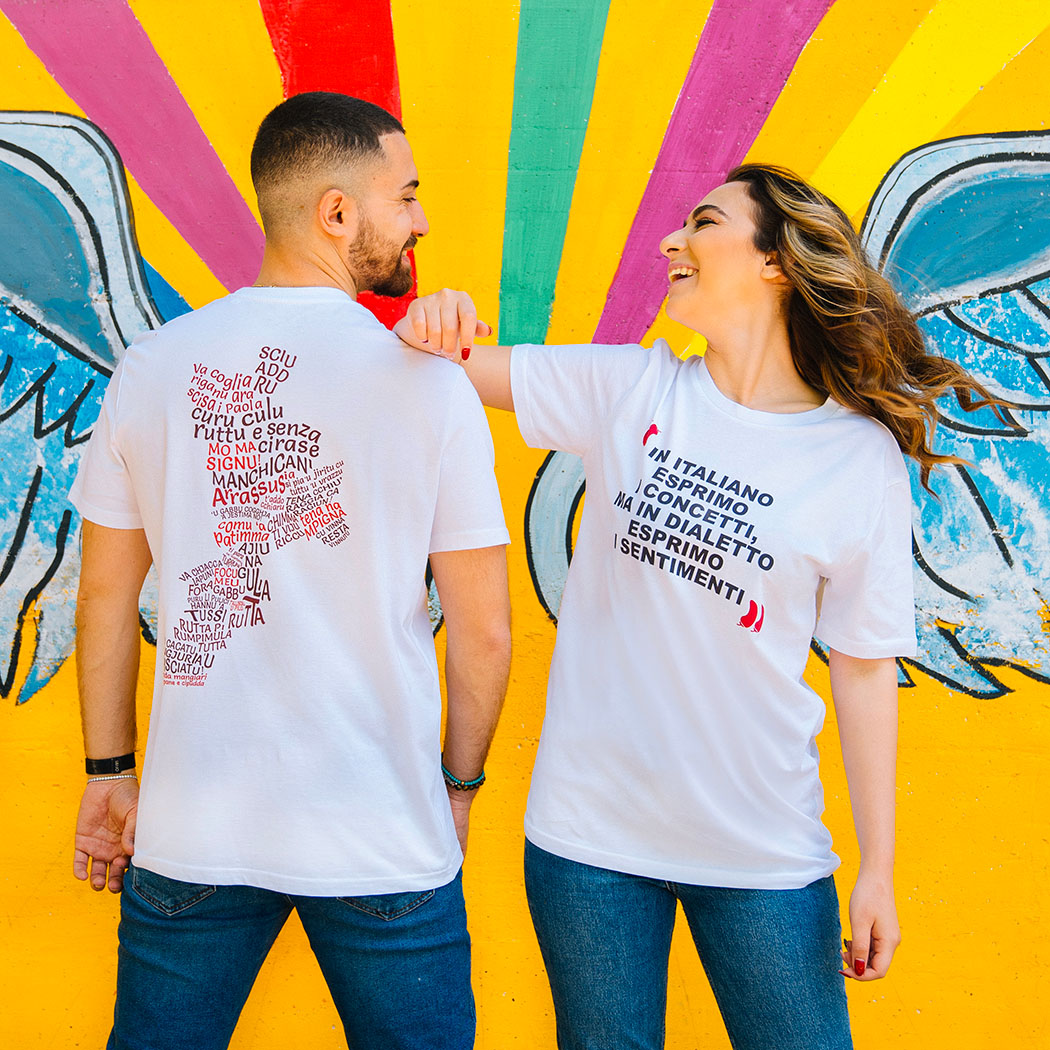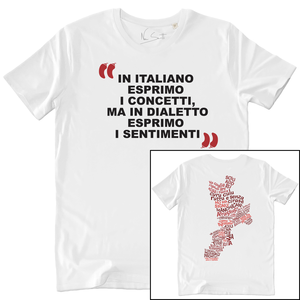 T-shirt UNISEX – “IN ITALIANO ESPRIMO I CONCETTI MA IN DIALETTO ESPRIMO I SENTIMENTI” bianca